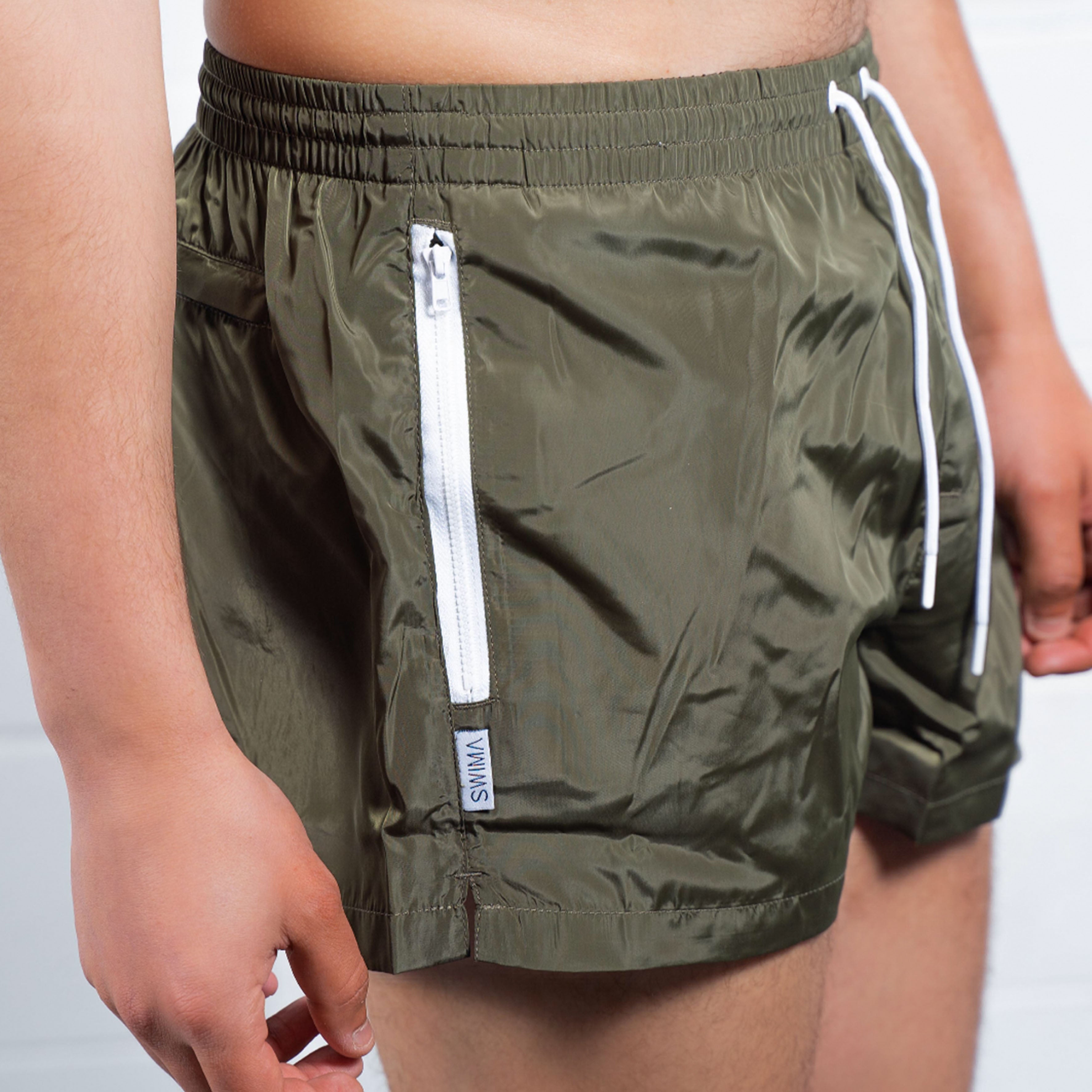 The khaki colour scheme is made from 100% Polyester material with an enhanced shiny finish. Tailor fitted to the perfect length, it is complimented by immaculate white detailing. This consists of a front draw string, two modest front zip pockets and includes a back zip pocket.The perfect shorts for any sized yacht!
